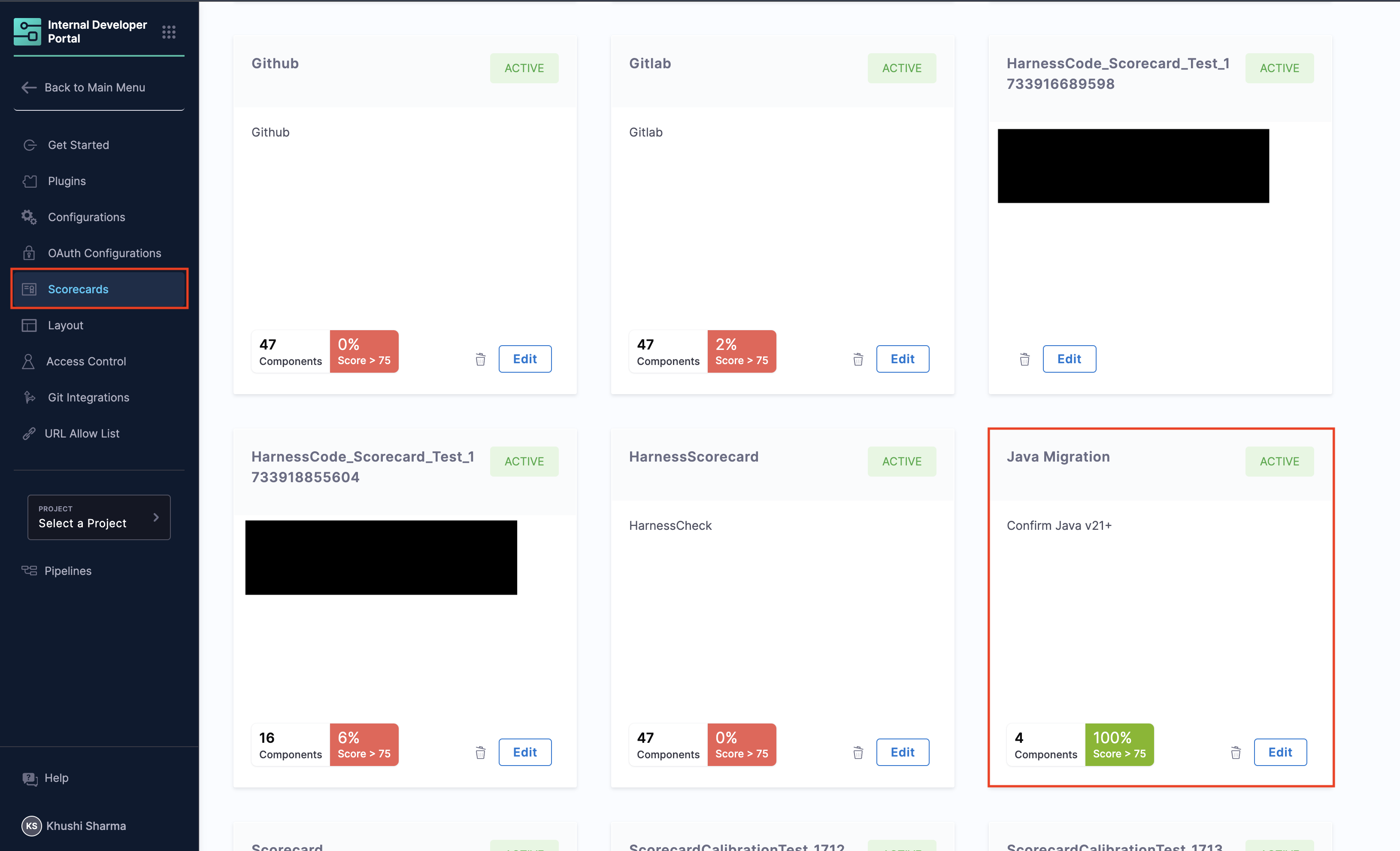 You can manually refresh a component's Scorecard evaluation from the Harness IDP UI, triggering an on-demand evaluation and updating the component's score in real time.
