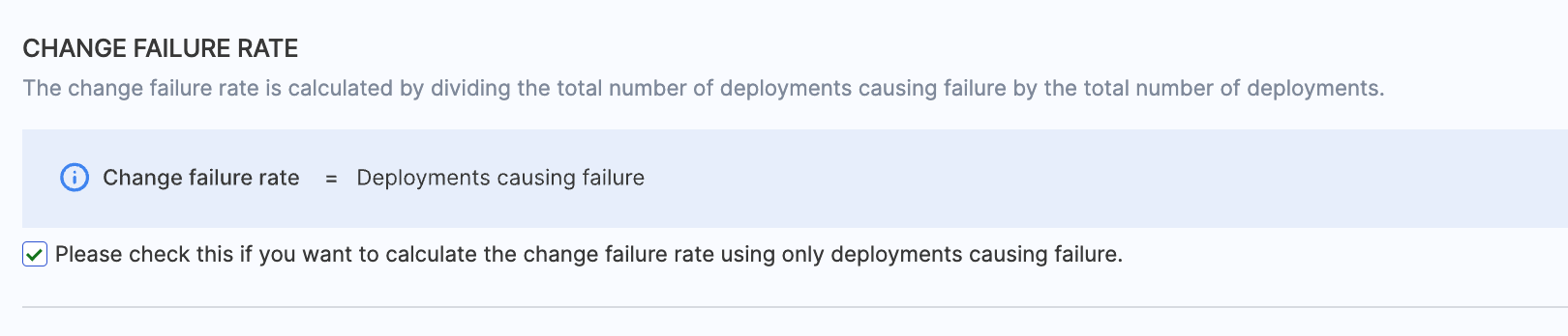 - Incidents is the recommended option for measuring deployment causing failure.