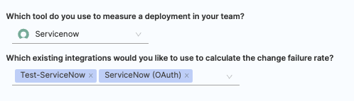 - Select the relevant ServiceNow integrations that you wish to use for calculating change failure rate.