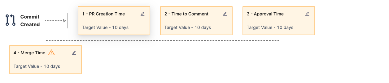 - Time from commit to first PR creation: Measures the time to create the initial PR.
