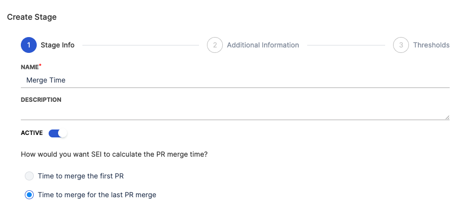 - Choose how would you want SEI to calculate the PR merge time.